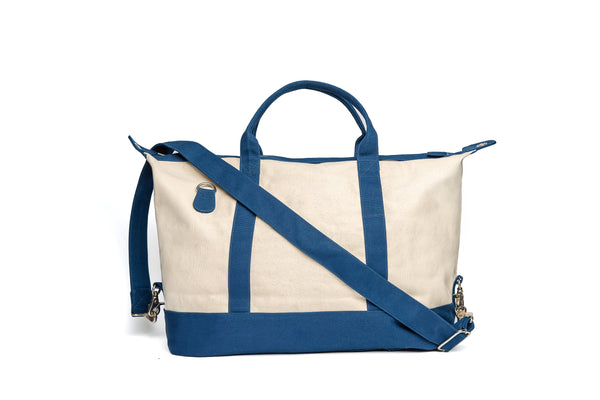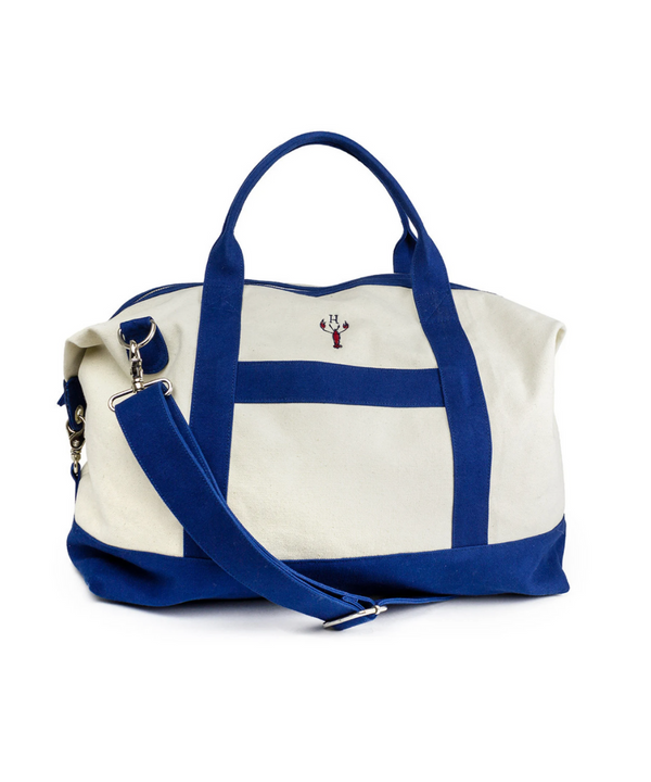It's get-away time! The Hamptons Weekender bag is made from highly durable cotton canvas and is roomy enough for all your weekend's gear. It features two internal and one exterior pocket keep you organized.